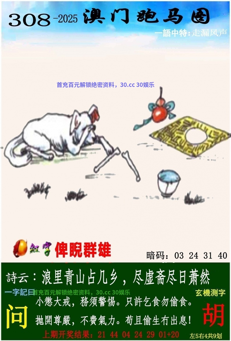 | 304期 | 兔鸡狗马 | 开:马48 |